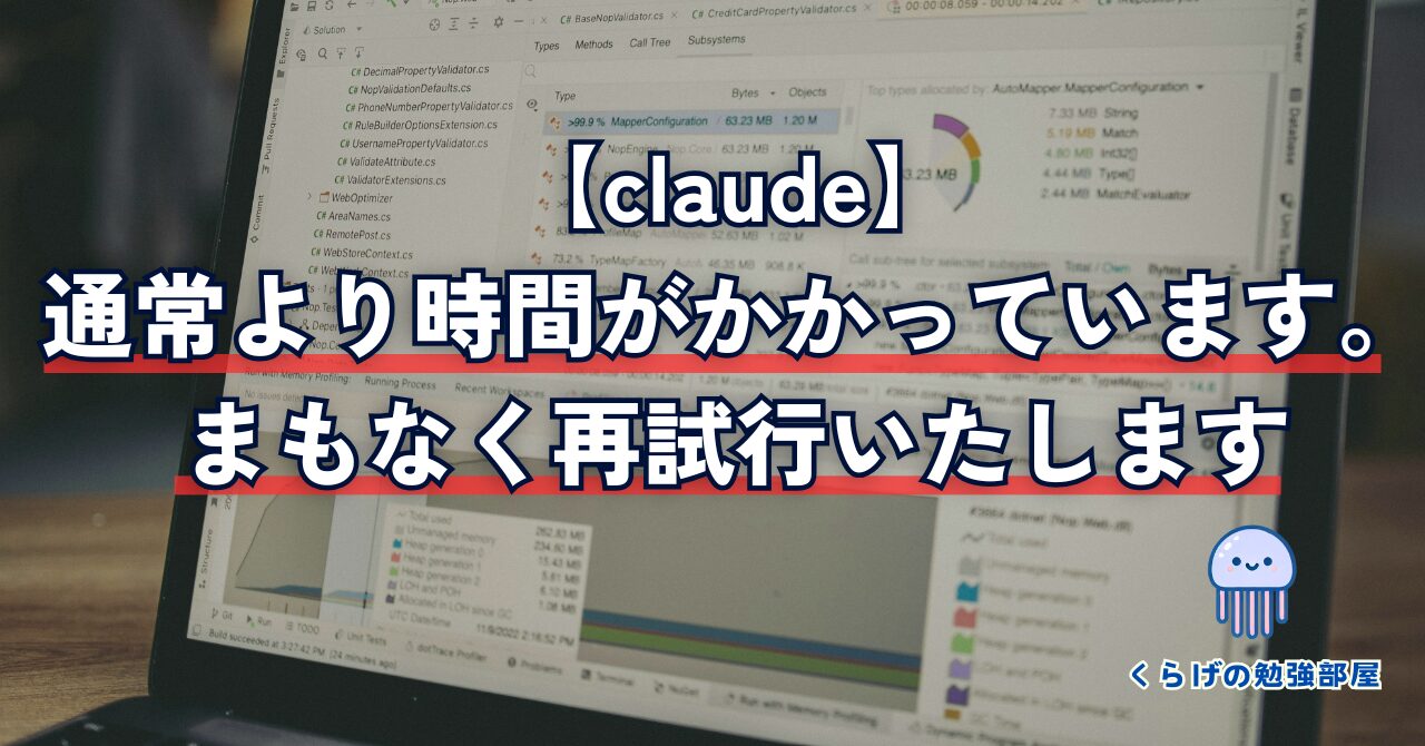 まとめ:【claude】「通常より時間がかかっています。まもなく再試行いたします」